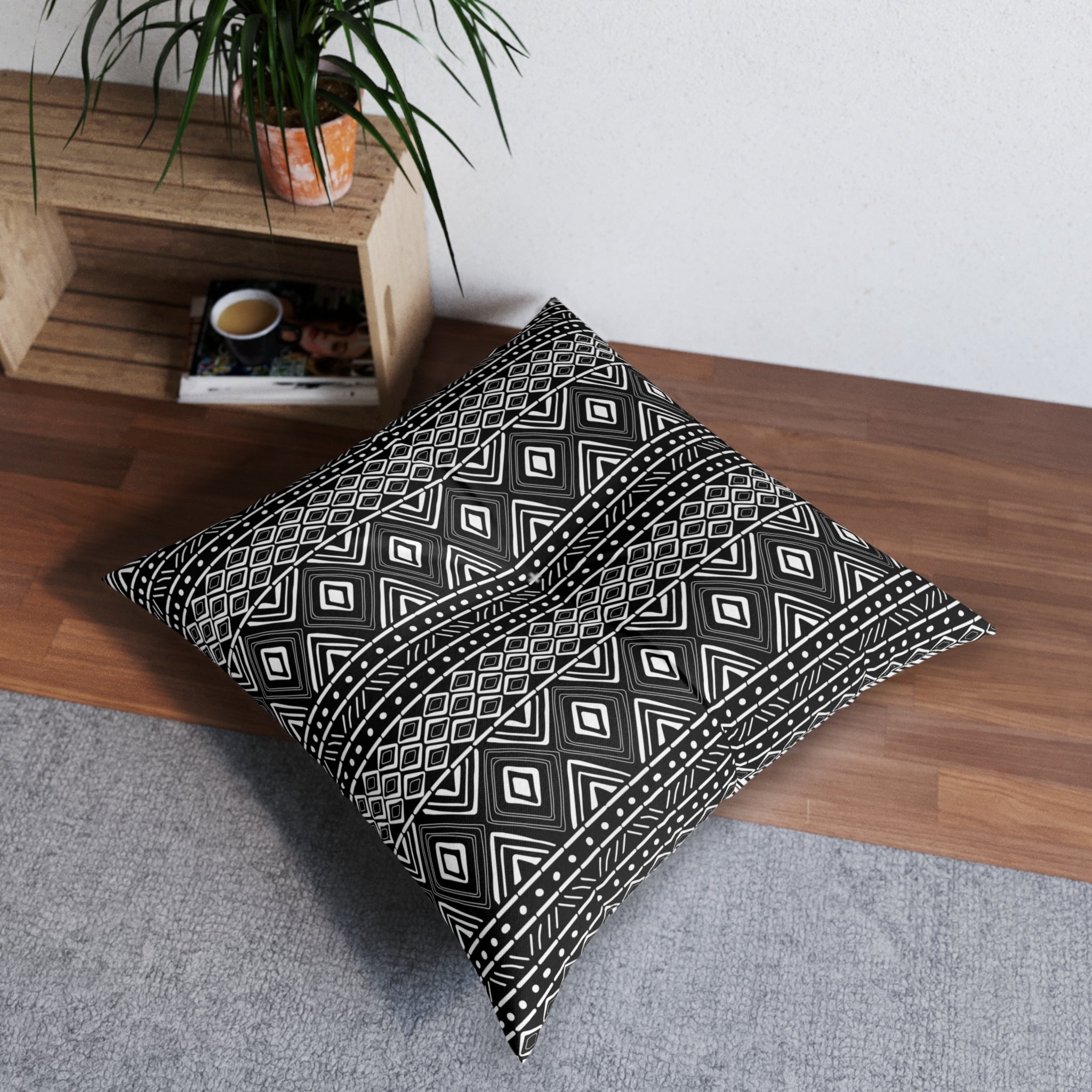 Ebony Ascent Bohemian Tufted Floor Pillow