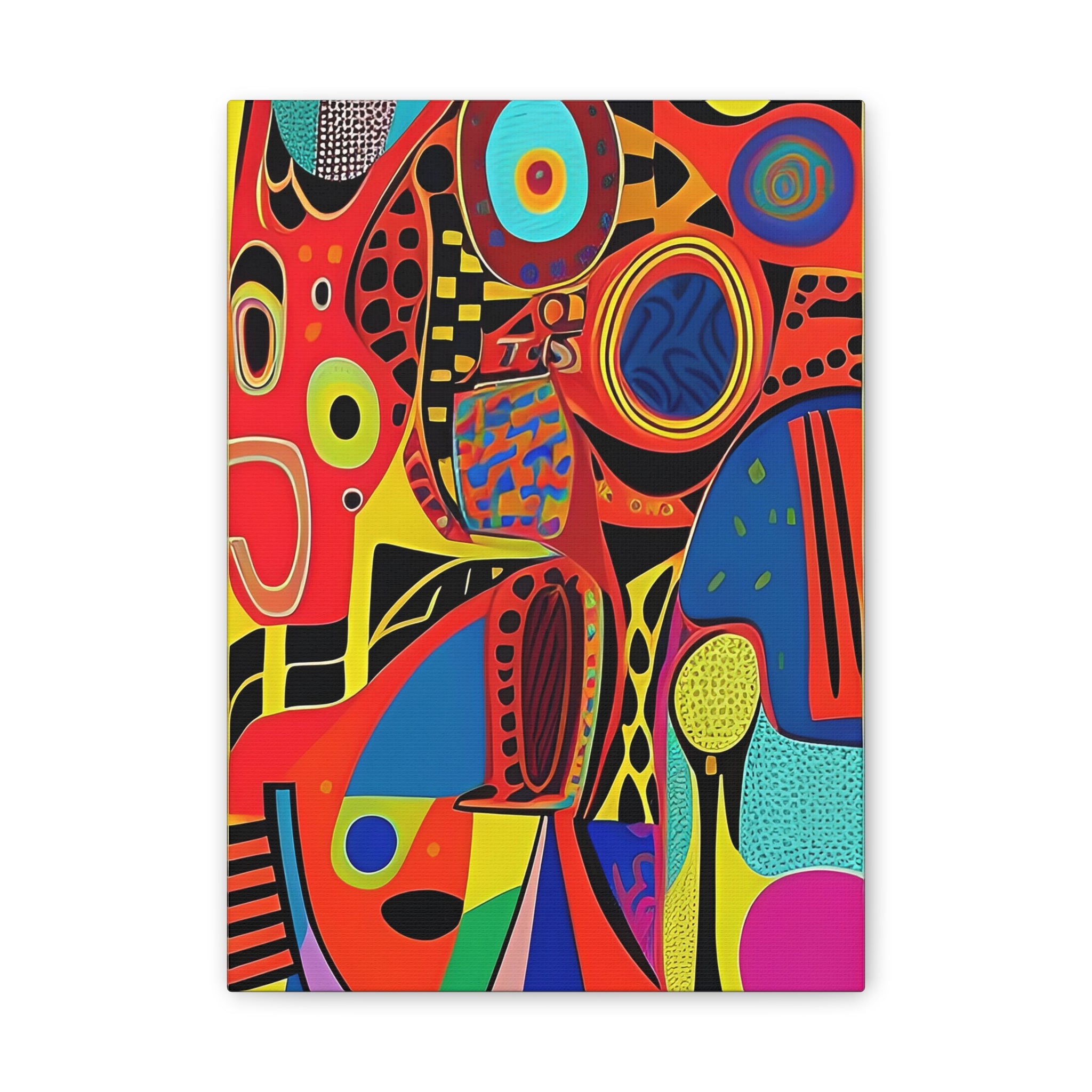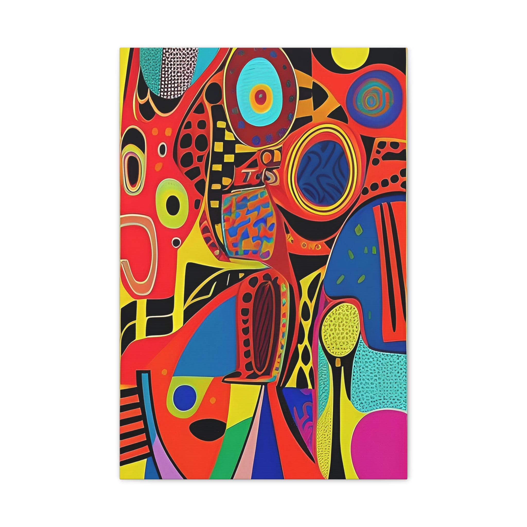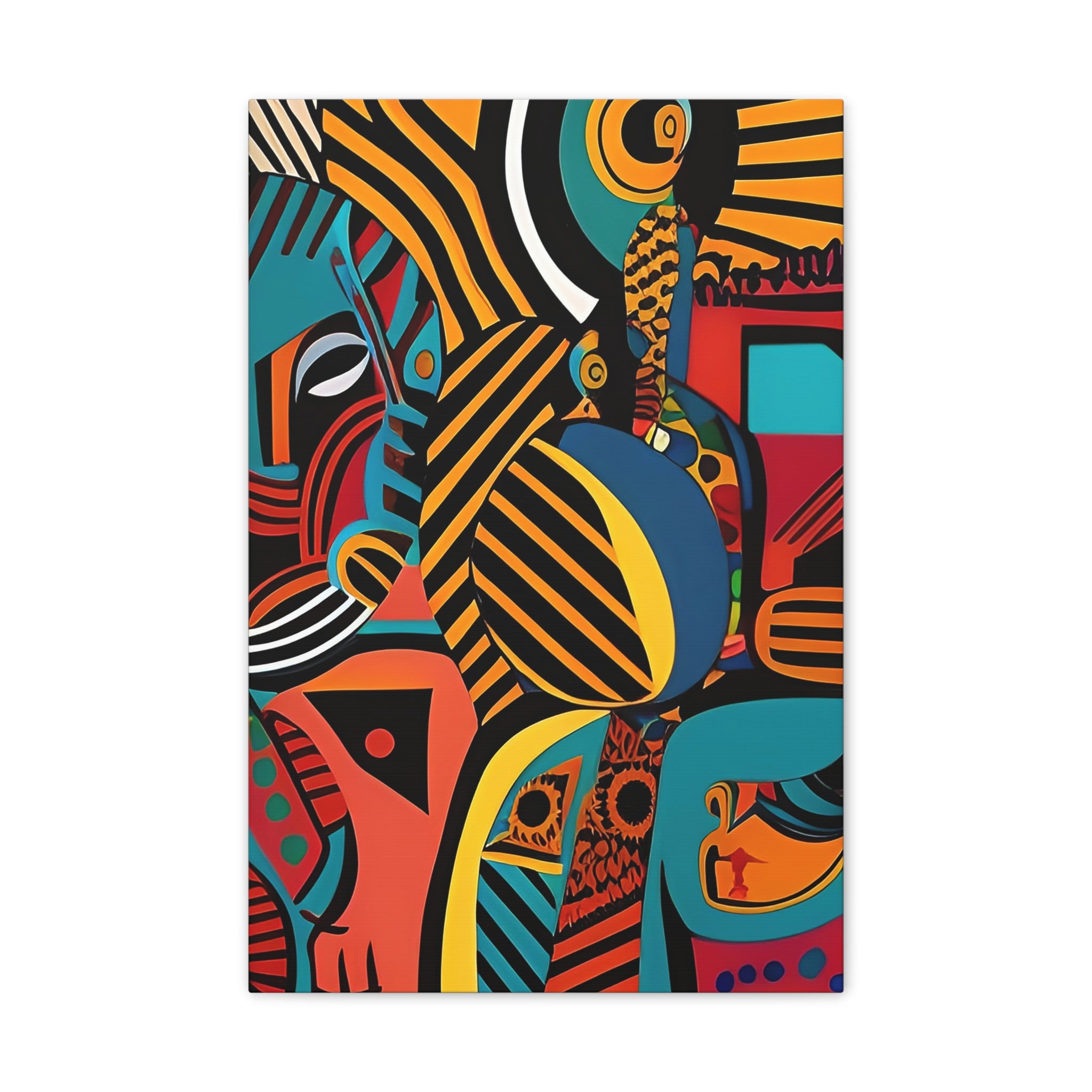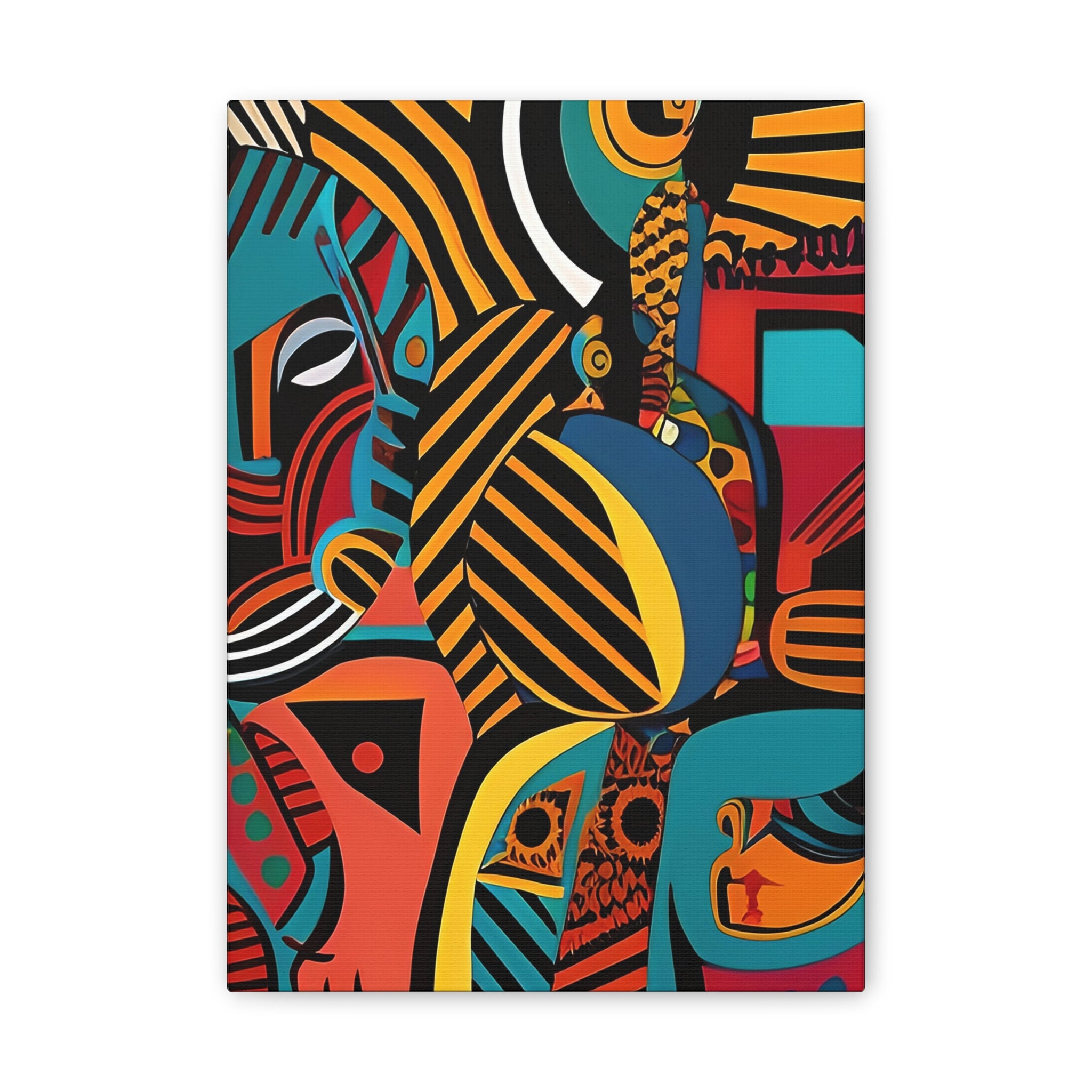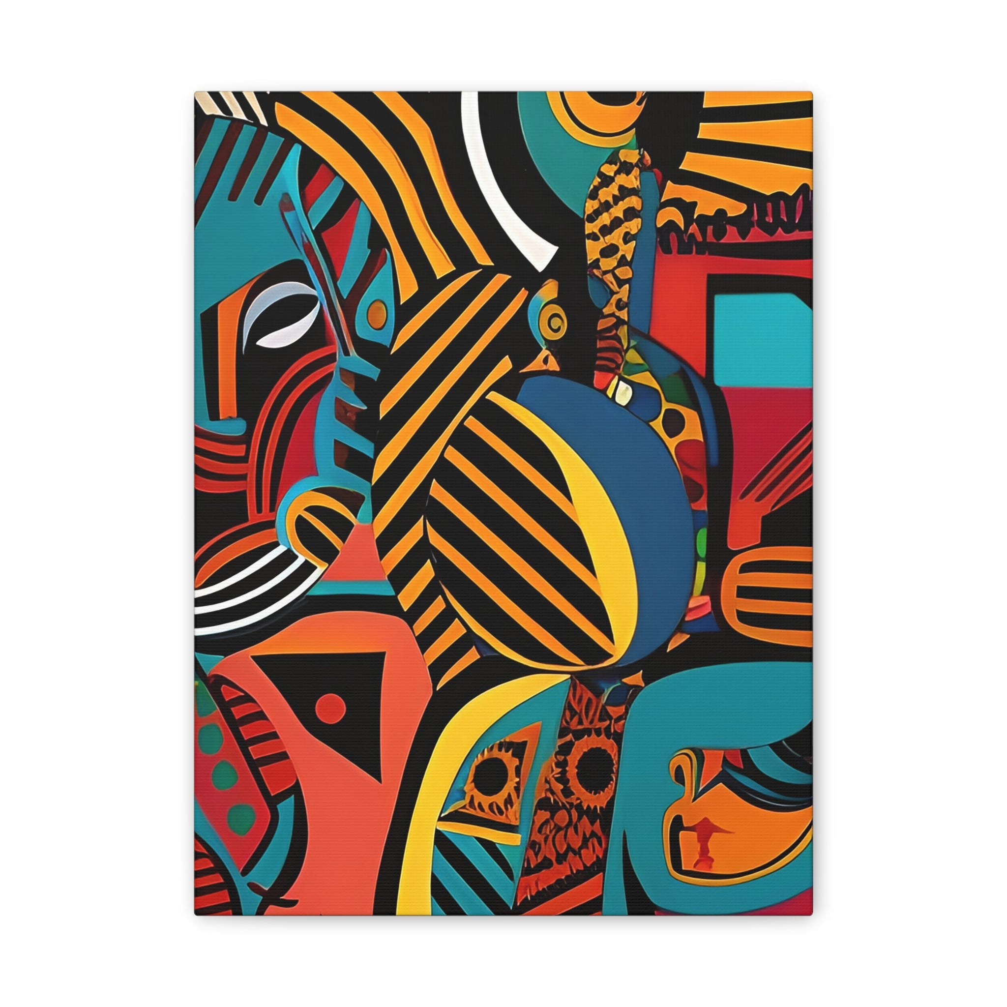 Lineage in Motion, Color in Code Immerse yourself in the coded vibrance of Zamani Echo, a stretched canvas wall art...