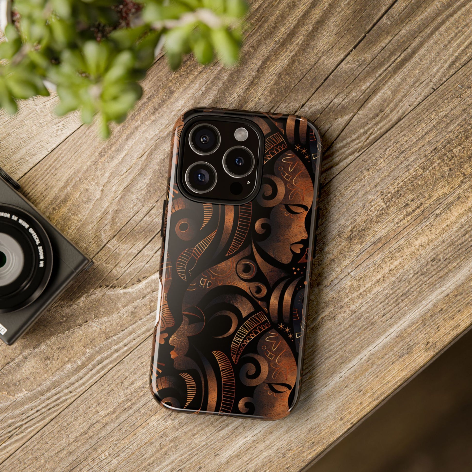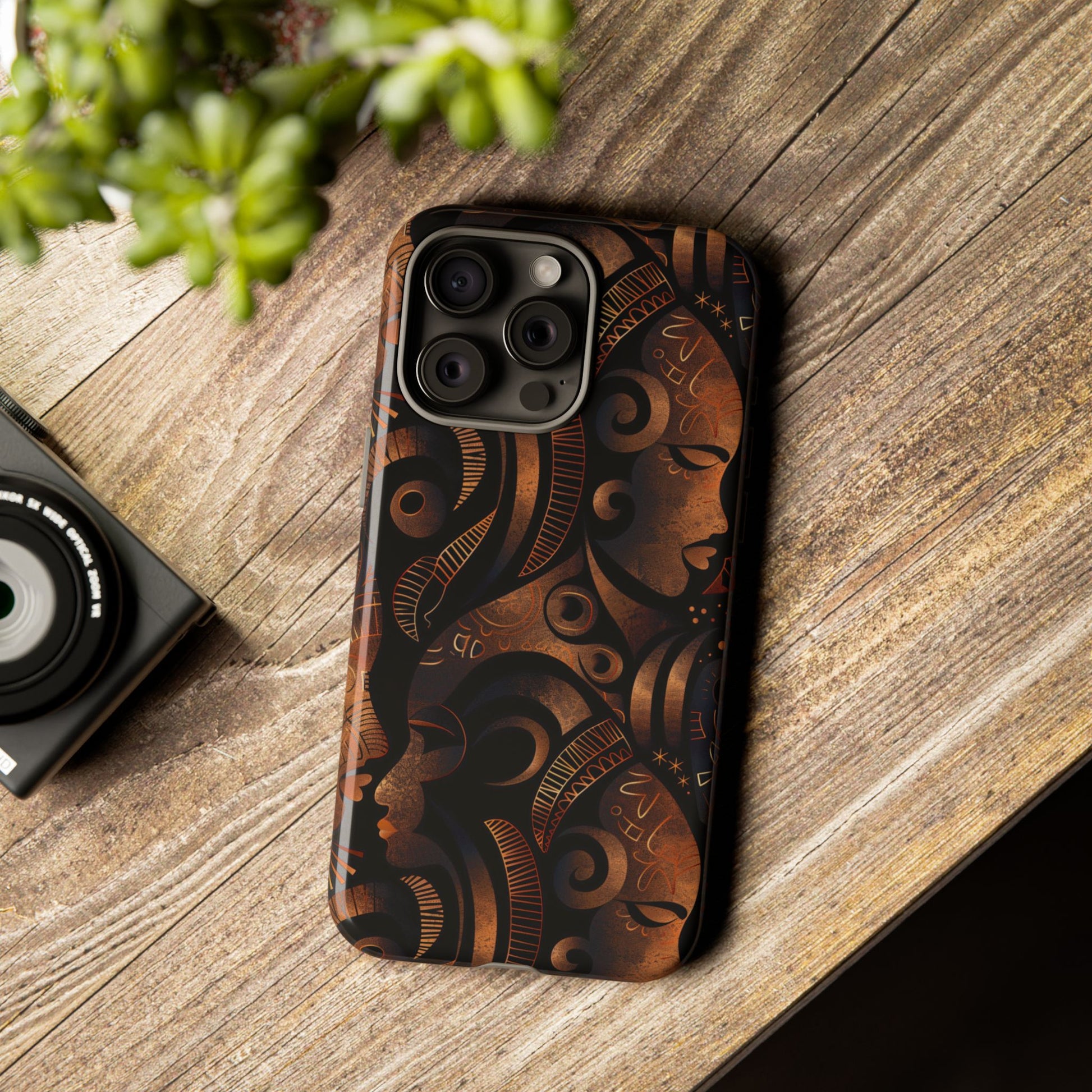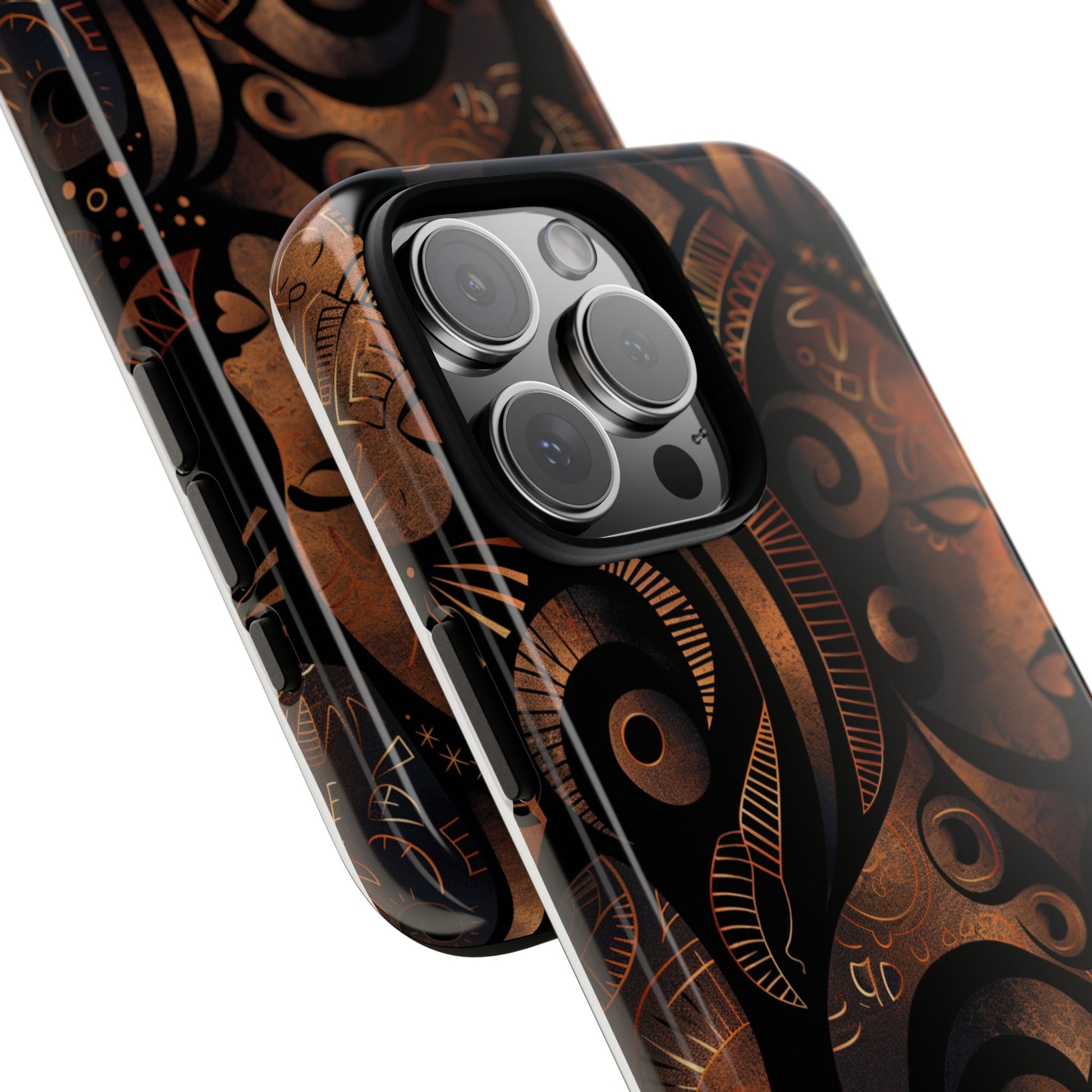 The Celestial Silhouettes Tough Case for iPhone honors the divine feminine and the cosmic rhythm of African heritage. Interwoven profiles reflect lineage, unity, and generational wisdom, while celestial symbols evoke spiritual grounding and ancestral protection. The deep bronze and black tones add a luxurious warmth, transforming your phone into a statement of identity and strength. Built with dual-layer durability, this case offers serious protection—without compromising on meaning or elegance.