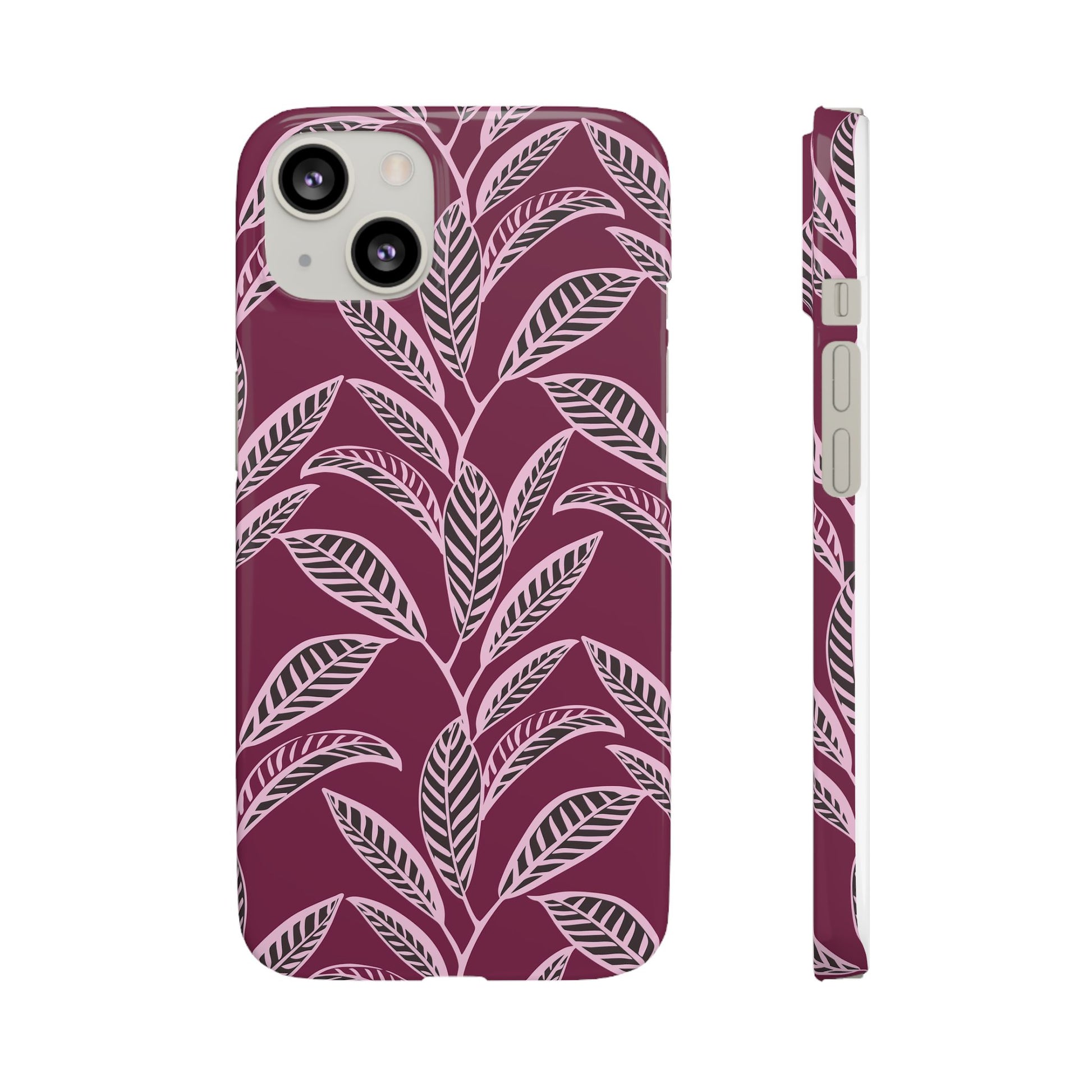 Add a refined touch to your iPhone with the Foliage Symphony Snap Case. This design channels African botanical elegance through sleek, linear leaves in rhythmic patterns. With a slim silhouette and vivid maroon and pink palette, it merges ancestral artistry with modern flair. Lightweight yet expressive, it’s the case for those who move boldly and root deeply.