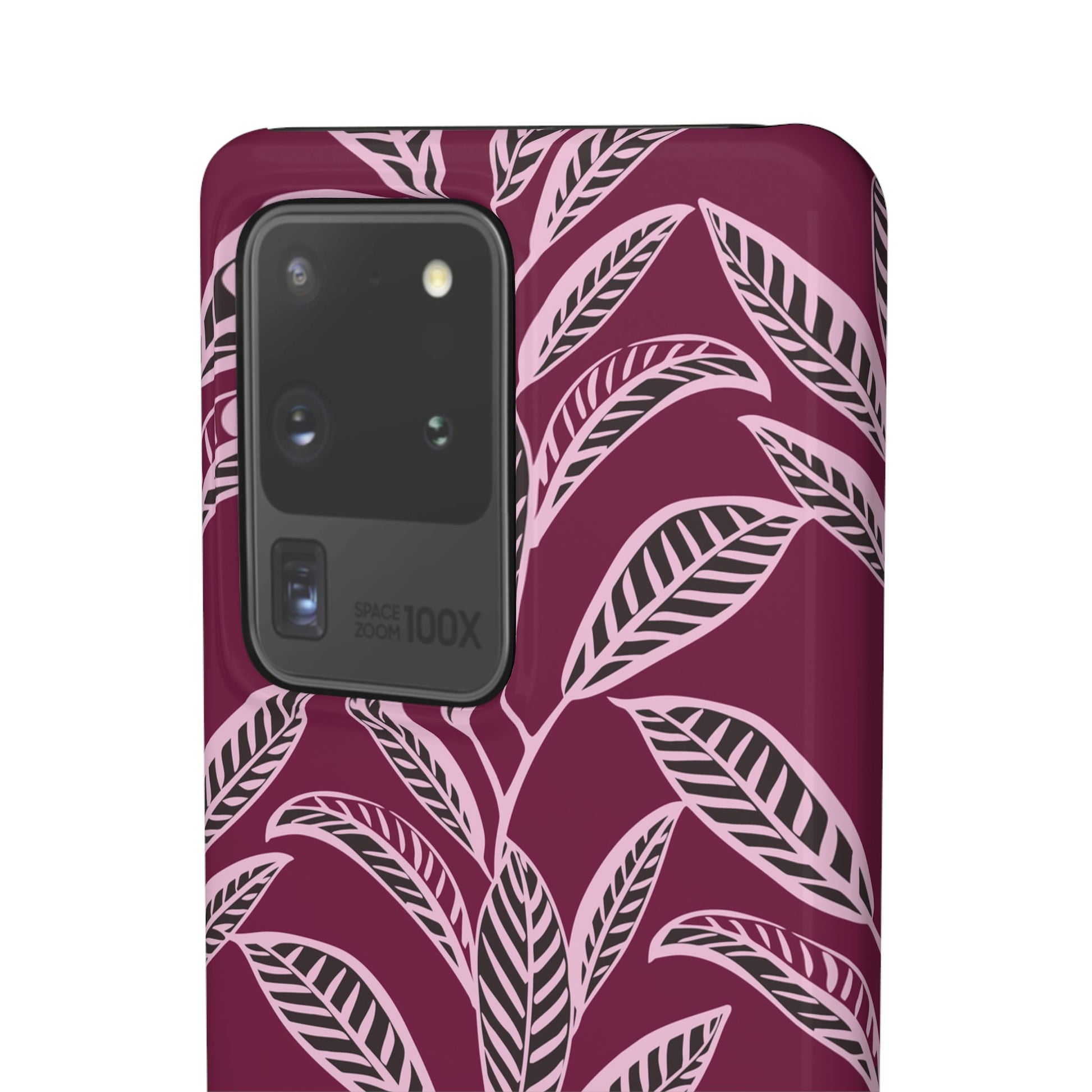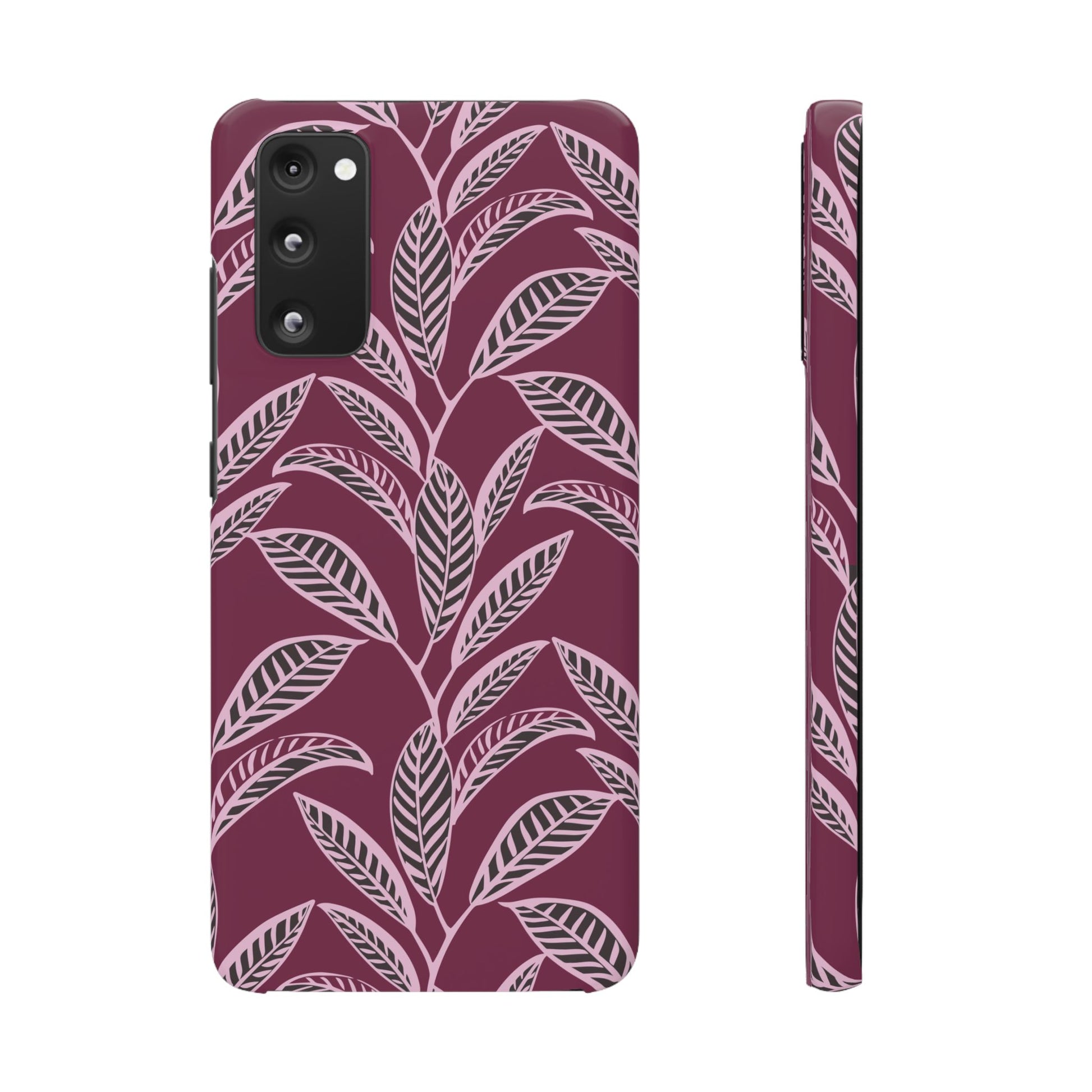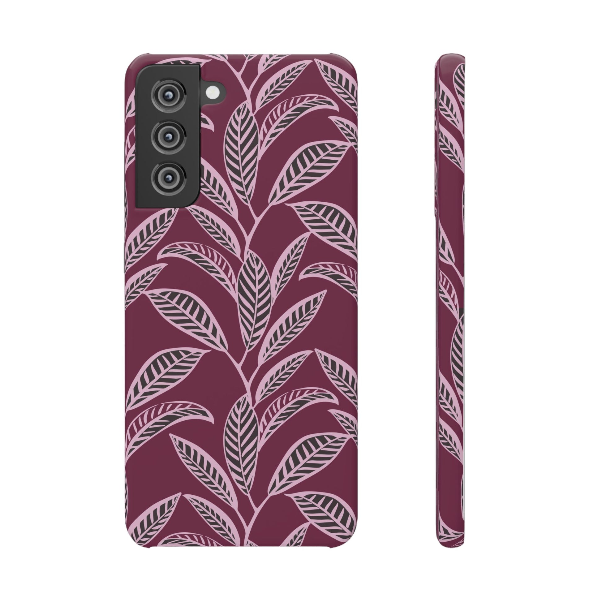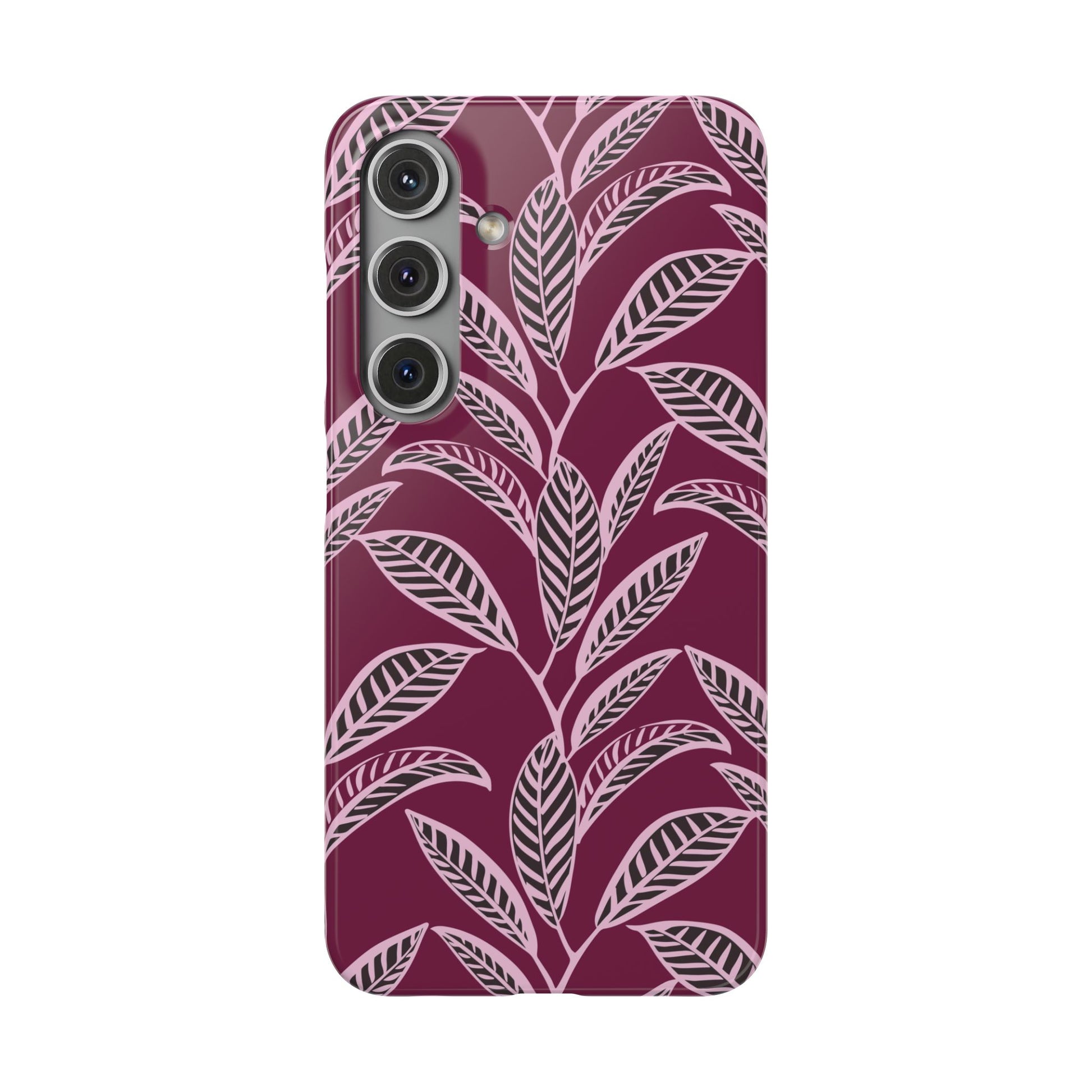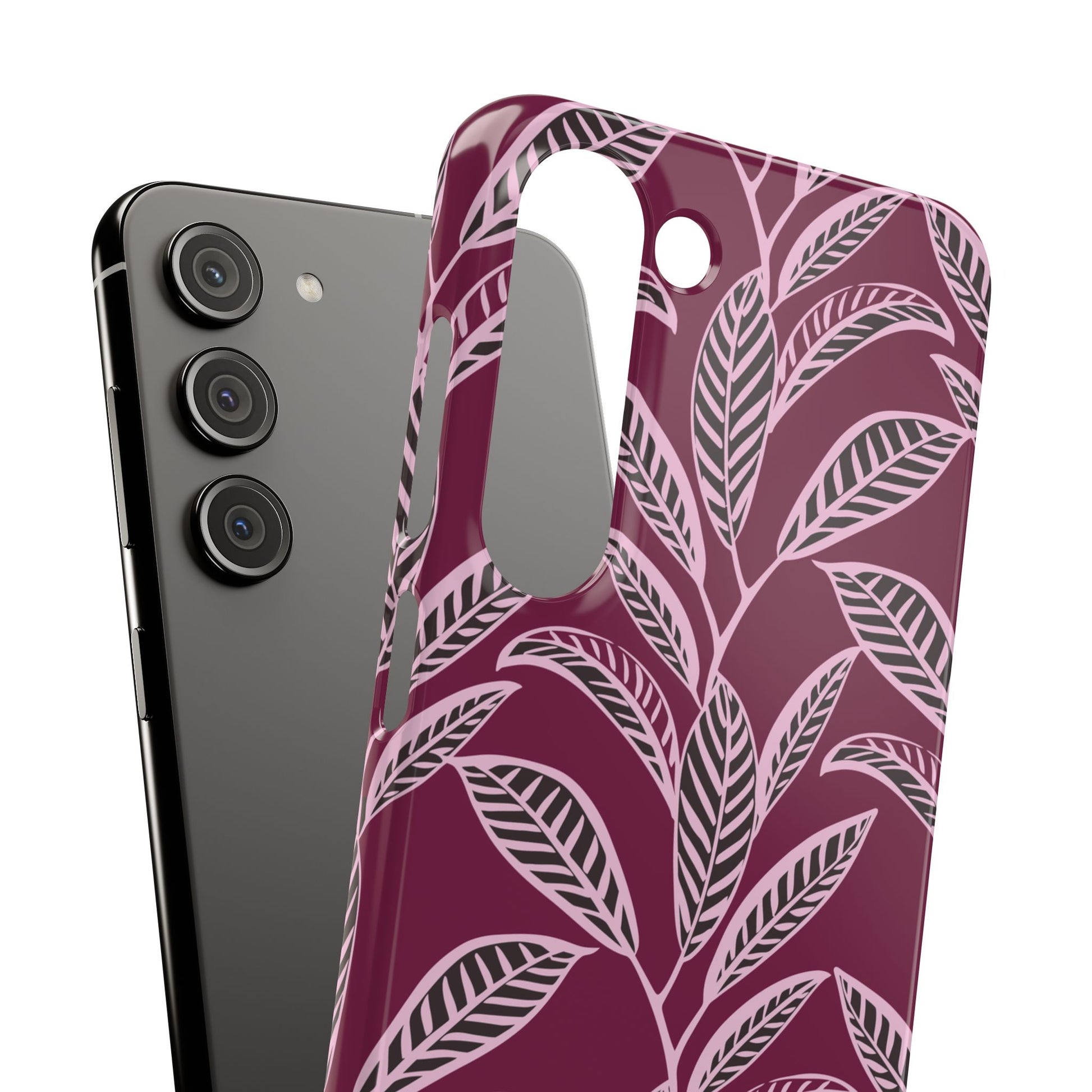 Elevate your Samsung phone with the Foliage Symphony Snap Case—a sleek fusion of tradition and trend. The sharp leaf motifs, set in striking contrast, evoke the elegance of African textile designs while providing a stylish layer of everyday protection. Ultra-slim and effortlessly cool, this case speaks volumes in every detail.
