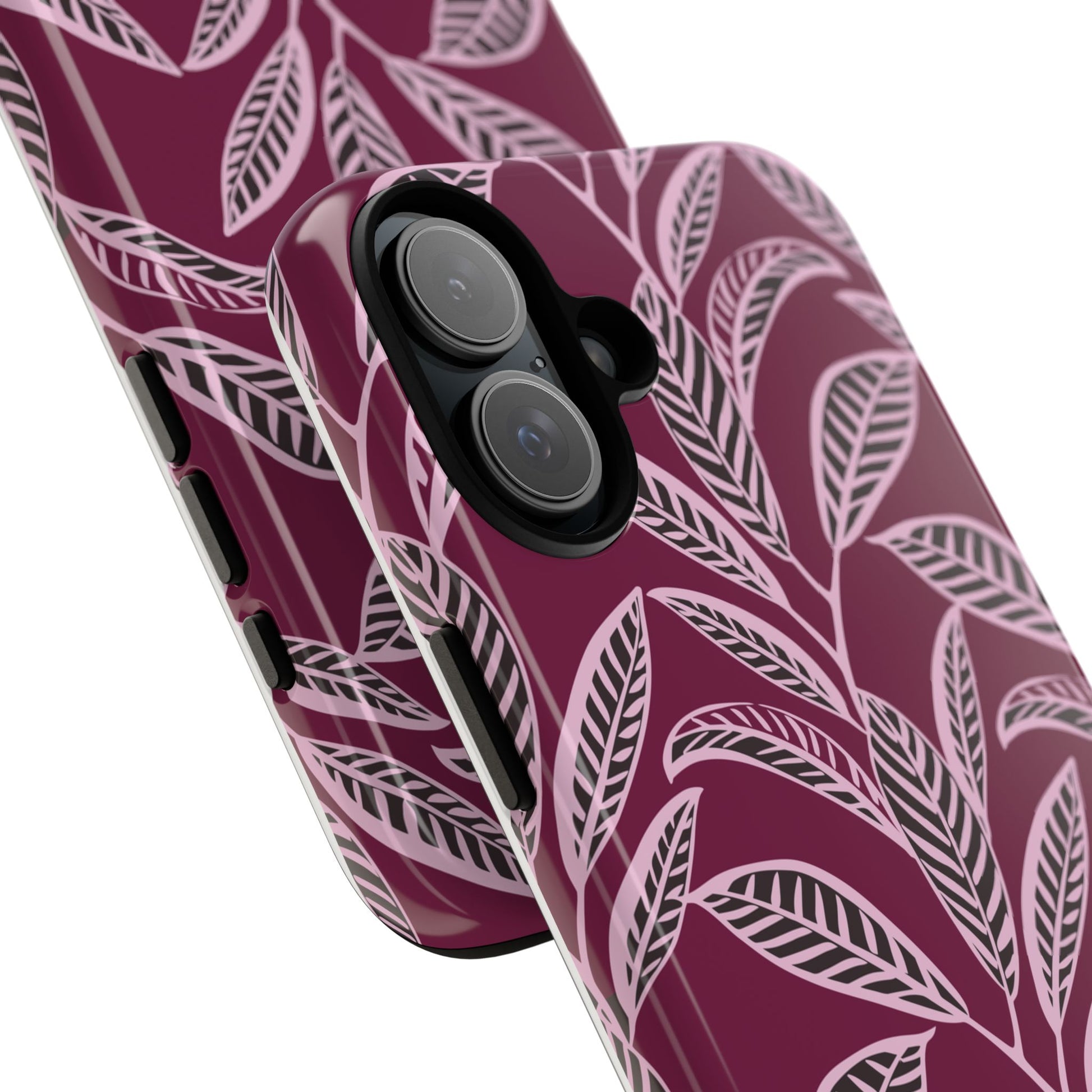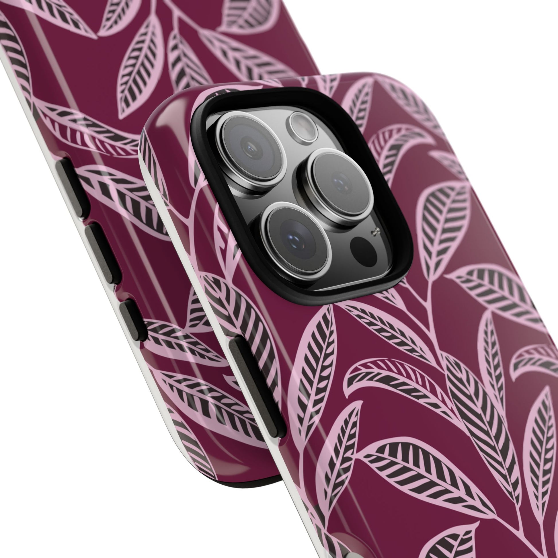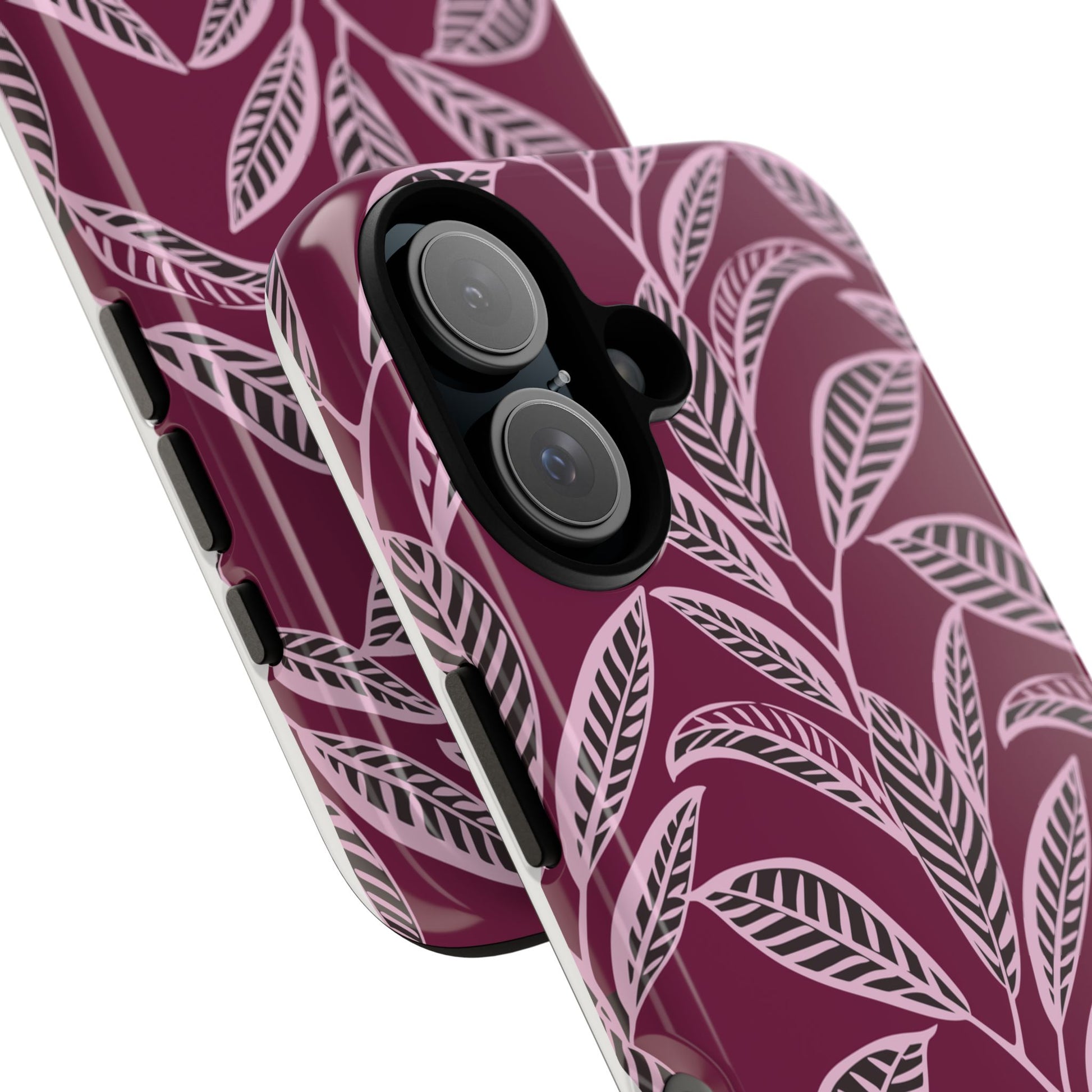 Wrap your iPhone in a celebration of nature and culture with the Foliage Symphony Tough Case. This design channels the rhythmic grace of African-inspired foliage motifs, reimagined in bold pink and maroon tones. A statement of both elegance and resilience, it honors the harmony between strength and beauty found in the natural world and the spirit of the diaspora. Let your device reflect your style and your story.