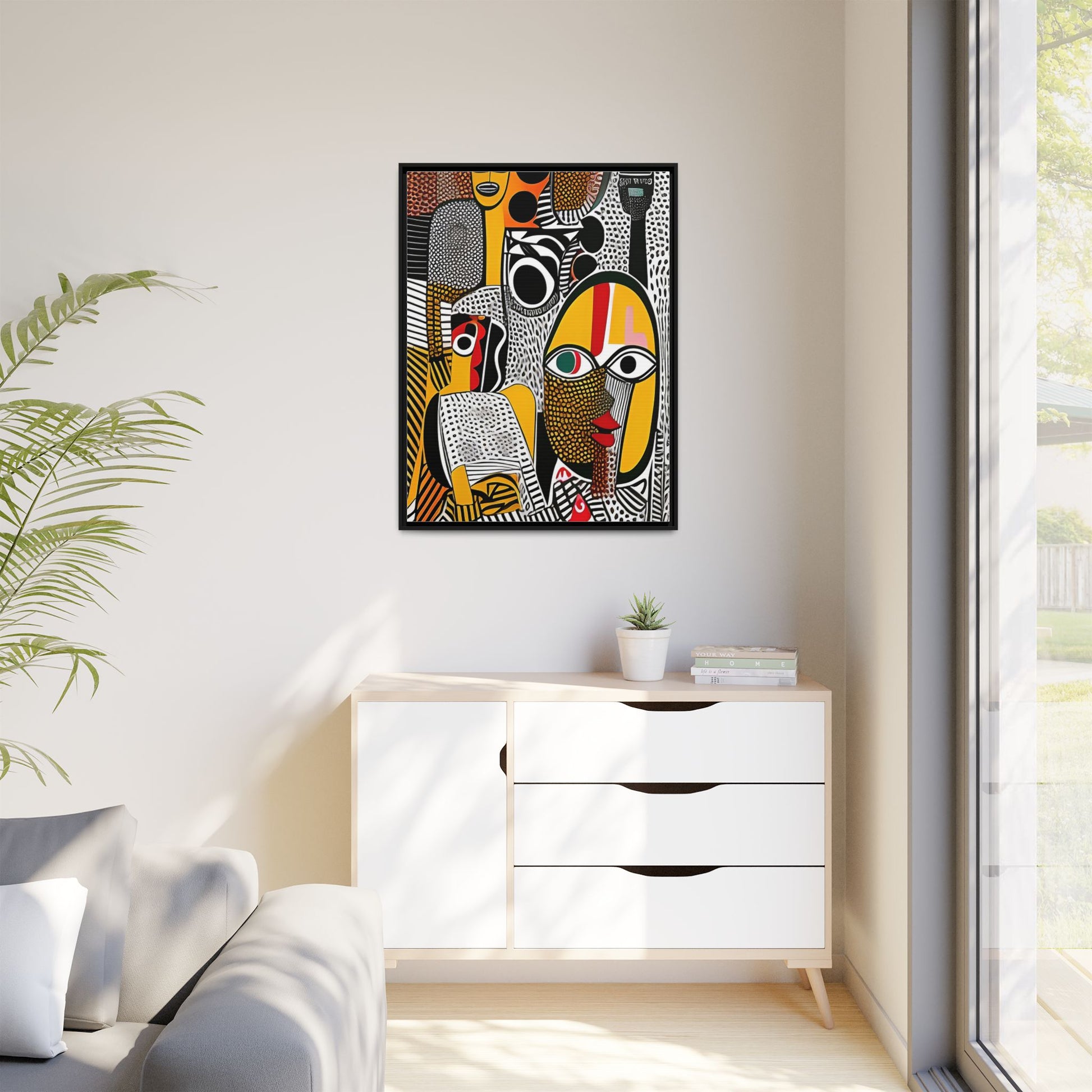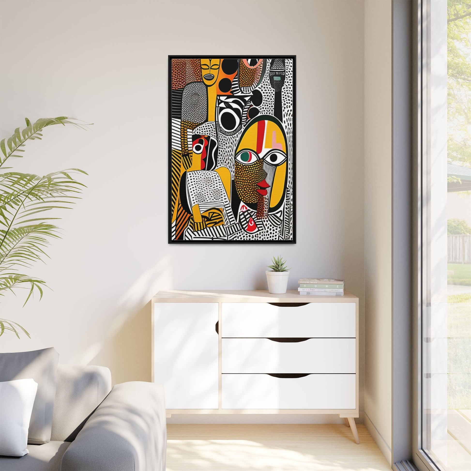 Embodying Yoruba wisdom and spiritual insight, Oju Oracle transforms wall space into a ceremonial canvas of vision. The word "Oju" — Yoruba for “eye” or “vision” — guides this artwork’s hypnotic interplay of bold colors, dotted spiritual textures, and ancestral mask motifs. Printed on fine matte canvas with a rich organic texture, this piece invites quiet reflection and cultural reverence. Let it breathe life into your home, studio, or sacred corner—honoring heritage with every glance.